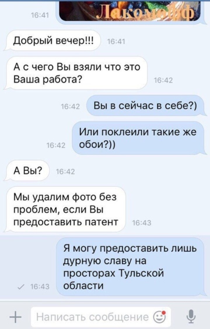 А ведь так часто бывает в кругах кондитеров. И ладно если ещё используется фото кондитера, который живёт в другом городе. А если это прямые конкуренты?