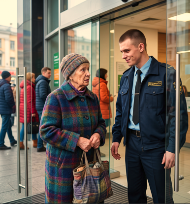 — В таком виде не положено! — отрезал он. — У нас здесь частный банк, закрытое обслуживание. Дресс-код, понимаете? Клиенты нервничают, когда рядом… ну, посторонние. Вон там, за углом, обычная касса есть, вам туда сподручнее будет.