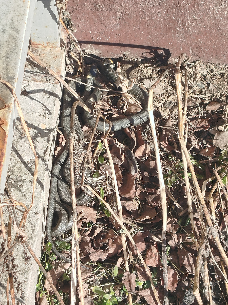 Ещё недавно запасной выход был сплошным сугробом,а сейчас там в прошлогодней траве греются ужи.