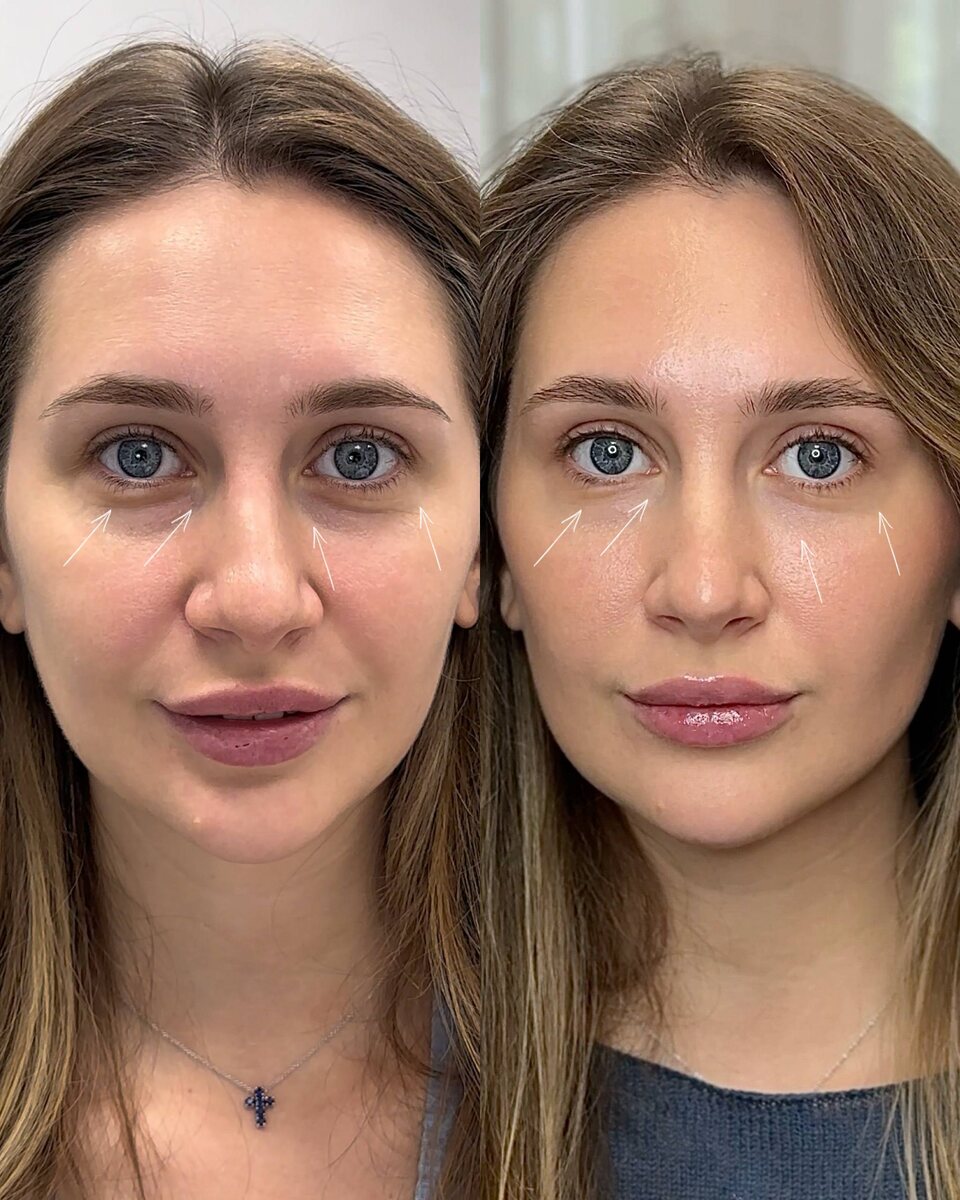 ❓ Если вы устали слышать: «Ты сегодня не выспалась?», даже после полноценного сна — проблема, скорее всего, не в режиме дня. Мешки и тёмные круги под глазами часто связаны с особенностями строения лица, а не с усталостью. Один из главных «виновников» — углублённая носослёзная борозда. Со временем она становится более выраженной: кожа истончается, объём мягких тканей уходит, и под глазами появляется тень — создавая эффект усталого и постаревшего взгляда. ✔️ Решение — коррекция носослёзной борозды с помощью филлеров. Это быстрая и малоинвазивная процедура, которая: — Заполняет углубление — Разглаживает переход от нижнего века к щеке — Освежает взгляд — Уменьшает выраженность тёмных кругов и «мешков» Результат — отдохнувшее лицо без признаков усталости. Если вы хотите «стереть» усталость с лица — ставьте ➕ в комментариях и мы запишем вас на процедуру