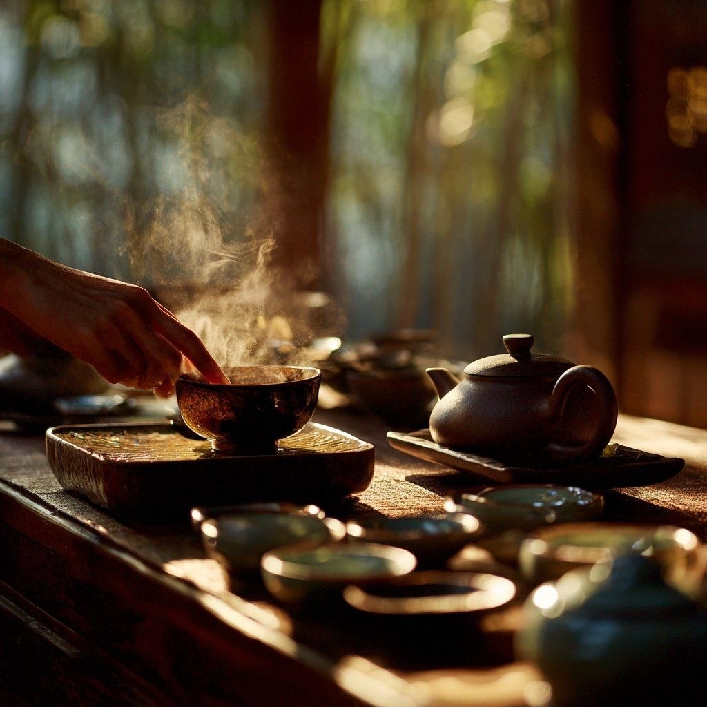 В китайской культуре есть понятие «Гунфу» (功夫). Оно означает высшее мастерство, достигнутое через долгий труд и концентрацию. Это слово применимо и к боевым искусствам, и к чаю. Гунфу Ча — это не просто заваривание, это диалог с чайным листом. Это способ прожить несколько часов так, будто внешнего мира не существует, а есть только вода, чай и ваше дыхание. Зачем нужны эти крошечные пиалы? Почему чайник такой маленький? В Гунфу Ча цель — не утолить жажду, а проследить за эволюцией вкуса. Чай заваривают «проливами»: настаивают всего несколько секунд и сливают всю воду в отдельный сосуд (Чахай — «Море чая»). Зачем так сложно? Представьте симфонию. Первая секунда звучания — это флейта, вторая — скрипка, третья — вступают литавры. Если смешать все звуки в один долгий аккорд, получится каша. Так и с чаем: в первой заварке (ее часто сливают) — пыль и пробуждение, во второй — нежность, в третьей — мощь, в четвертой — сладость. Классический набор для Гунфу Ча минималистичен, но продуман до мело