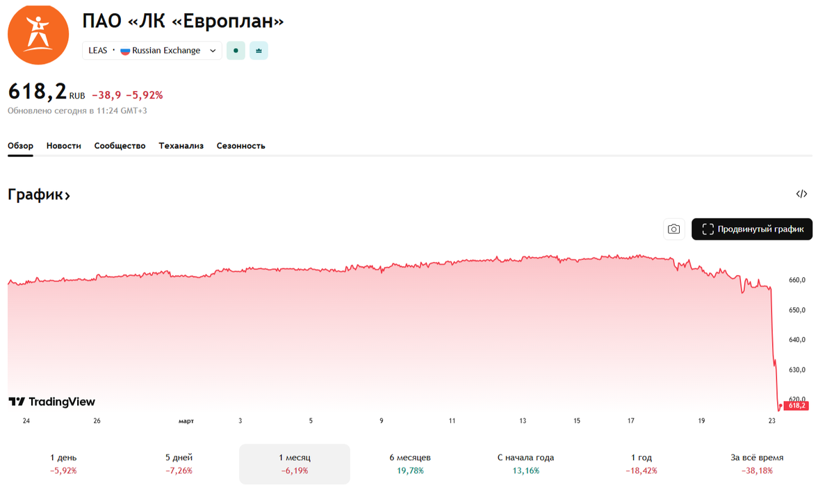 Сегодня истек срок предъявления акций Европлана к обратному выкупу, и эти акции вполне ожидаемо рухнули. Падение в первый день составило 6-7% с самого начала торгов. Когда компанию купил Альфа-банк, и выставил оферту на выкуп акций, как это и требовалось по законодательству, я писал, что не планирую пользоваться правом обратного выкупа, и не буду продавать свои акции - я их покупал, чтобы держать и получать дивиденды. При этом писал, что неопределенность остается в области дальнейшей дивидендной политики компании - не будет ли она меняться. 2 марта финансовый директор компании Анатолий Аминов на дне инвестора заявил, что компания не планирует пересматривать дивидендную политику, и собирается направить на выплаты дивидендов в 2026 году 7 млрд рублей. У Европлана выпущено 120 млн акций, таким образом, на каждую планируется выплатить дивиденд 58+ рублей. Для сравнения, в 2025 года Европлан уже выплатил дивиденды 10,44 млрд руб. (29 - еще за 2024 год и 58 за часть 2025-го). Не совсем понят