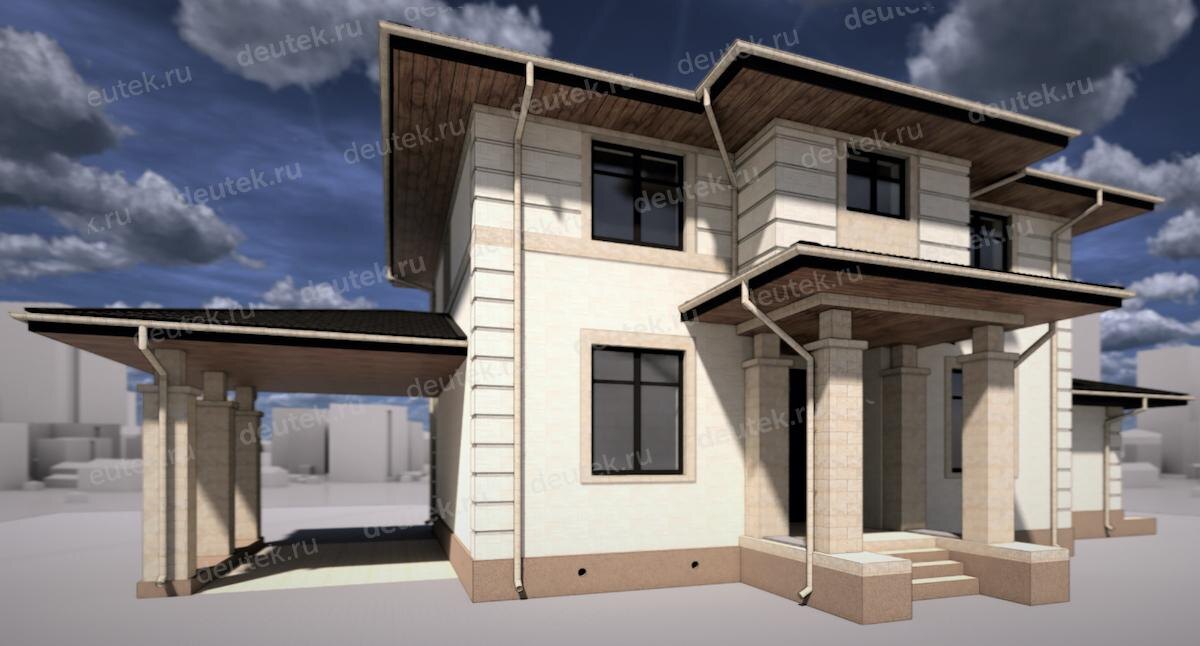 Номер проекта: DTE-52 Разделы проекта: Архитектурный и Конструктивный разделы Заказать проект можно на сайте deutek.ru или по телефону +7 (495) 175-30-40 Другие проекты можете посмотреть в этом разделе https://zen.yandex.ru/proektirovaniedomov Двухуровневый коттедж с отделкой из дагестанского камня выглядит престижно и стильно. Практичный и оригинальный, он станет надежным прибежищем для семьи из четырех-пяти человек. Общая площадь — 235 м2, габариты — 13.03 x 20.4 м. При реализации проекта вы получаете: Удобный дом с четырьмя спальнями, в том числе комфортной спальней на первом этаже; Остекленную веранду с зоной мангала и выходом в сад; Капитальный автонавес, защищающий семейный транспорт от солнца и осадков. Входная дверь располагается в углубленной нише в центре главного фасада. В прихожей поместится гардеробный шкаф, а справа двери в туалет и бойлерную Бойлерная просторная (10 м2), поэтому разумно совместить ее с постирочной. Гостиная-столовая и кухня спроектированы без перегородок