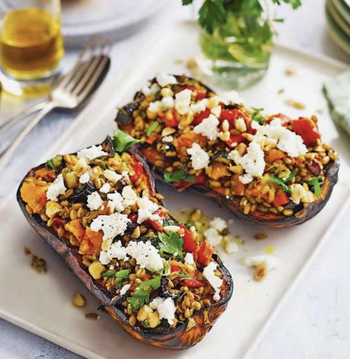 Фаршированная тыква — это не только вкусное, но и эстетически привлекательное блюдо. Сочетание нежной запечённой тыквы, сочных овощей, ореховой текстуры и солоноватого сыра фета создаёт неповторимый вкусовой ансамбль. Подавайте это блюдо как основное или как эффектную закуску на праздничном столе. Наслаждайтесь! 🍽️