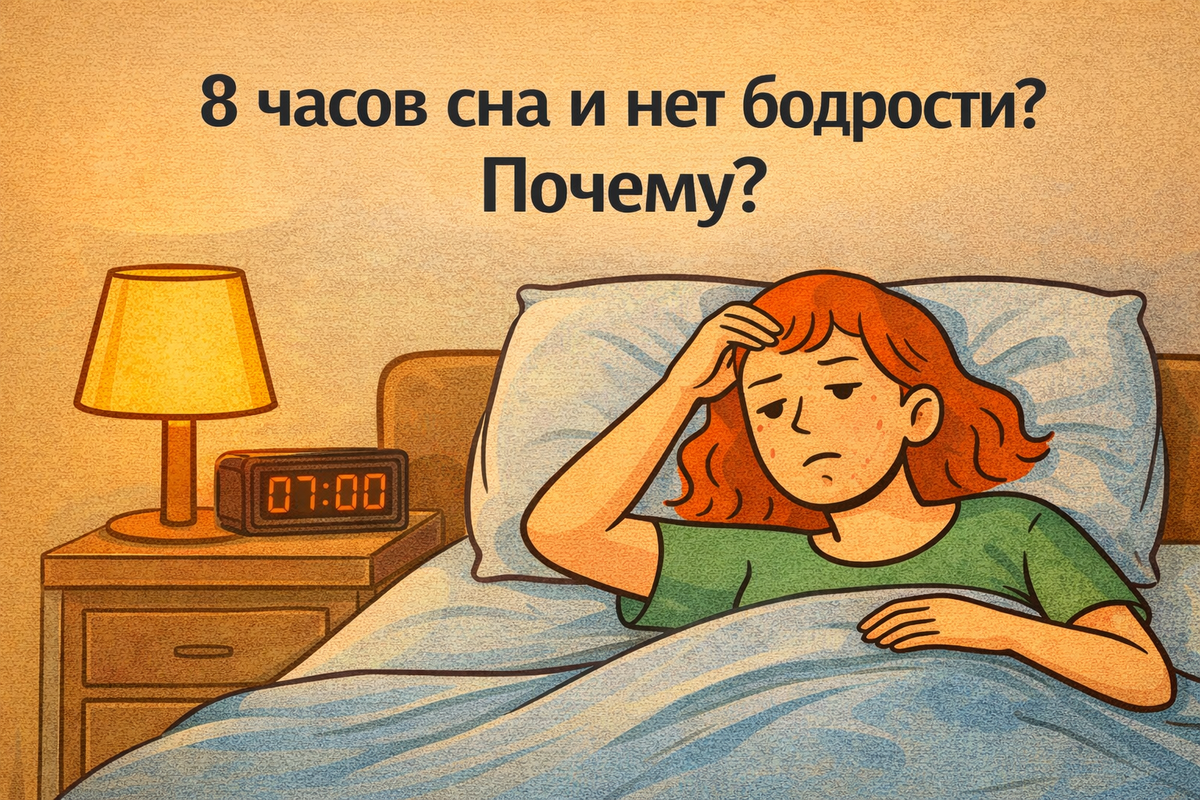 Знакомая ситуация? Вы спите целую ночь, но утром чувствуете себя совершенно разбитым. Будто и не спали вовсе. Тело ноет. В голове туман. Энергии хватает только на самые простые действия. И это очень обидно. Ведь вы делаете все правильно. Ложитесь вовремя. Спите положенные 8 часов. А толку никакого. Проблема не в том, сколько вы спите. Дело в другом. Ваш организм не получает настоящего отдыха. И на это есть три главные причины. 1. Ваш сон слишком поверхностный Вы можете проваляться в постели хоть 10 часов. Но если сон неглубокий, пользы будет мало. Что мешает глубокому сну? Многое: Когда сон поверхностный, ваш мозг не погружается в фазы глубокого восстановления. А именно они отвечают за настоящий отдых. 2. В вашем организме не хватает важных веществ Представьте машину без топлива. Сколько ни заводи, она не поедет. Так же и с нашим организмом. Частая причина утренней усталости - нехватка витаминов и минералов: Когда этих веществ мало, организм работает вполсилы. Вы можете спать сколько у