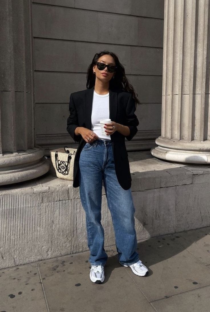 Это спортивная обувь, поэтому, чтобы образ выглядел целостным, добавляем какой-то спортивный элемент: