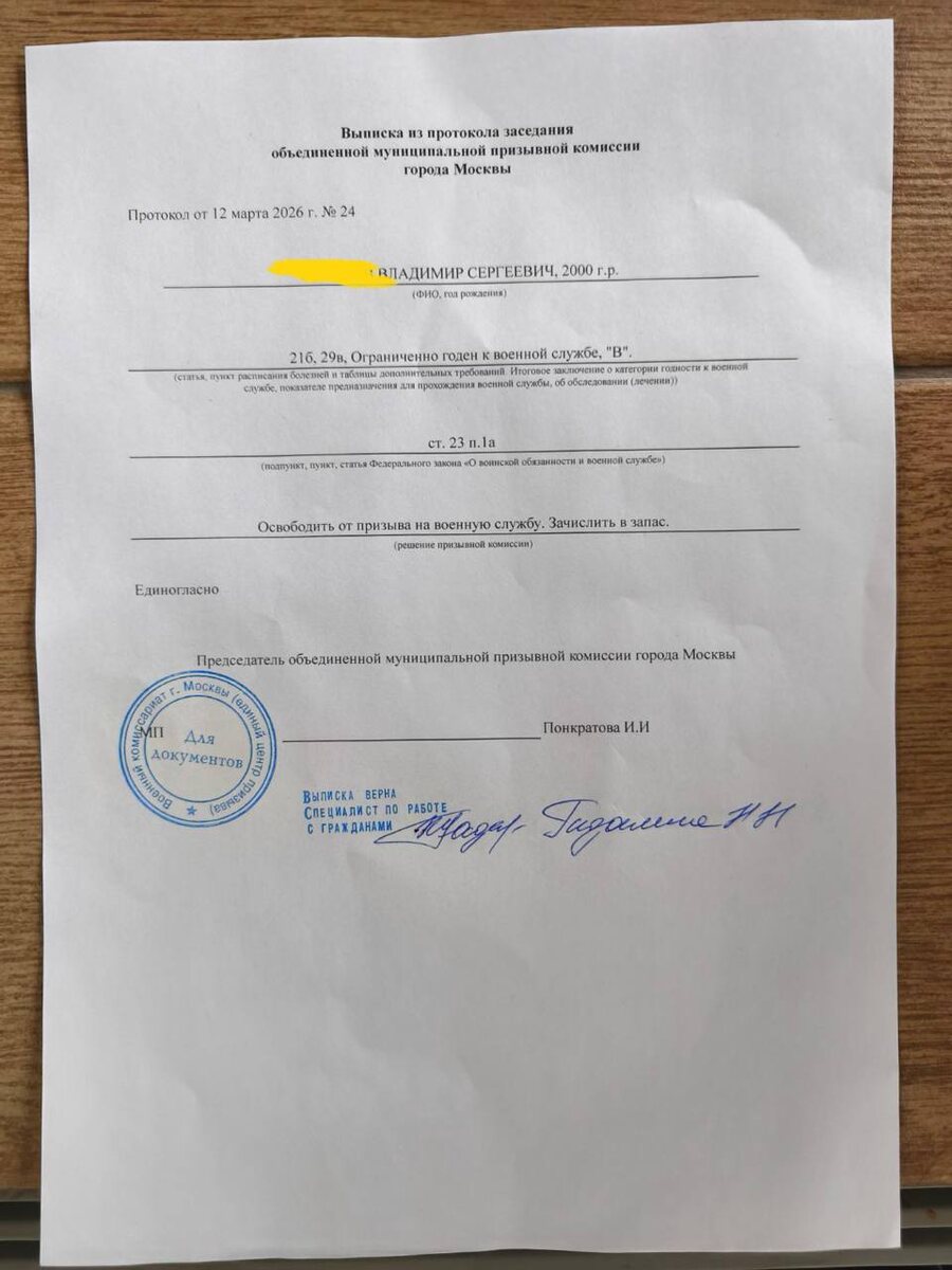 ». Прикрепляю часть из них. Но не только! Некоторым подопечным, несмотря на тщательно подготовленные документы, присвоили призывные категории (как в ЕЦП, так и уже на КМО) и выдали повестки на отправку. Обжалуем, конечно. Решение призывной комиссии субъекта (г. Москвы) обжалуем в суд, решение о призыве приостановлено. ➡️ узнать больше об очном сопровождении • контакт для связи: @Voennik_365 #АндрейПородзинский_клиенты