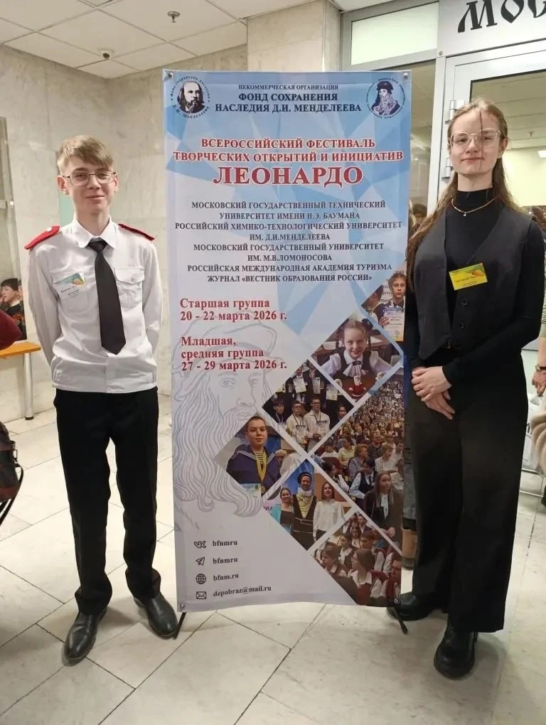 Учащаяся МБУ ДО ДЭБЦ Христина Григорьева и учащийся МБОУ СОШ 56 Артемий Васильев стали участниками Всероссийского фестиваля творческих открытий и инициатив «Леонардо».