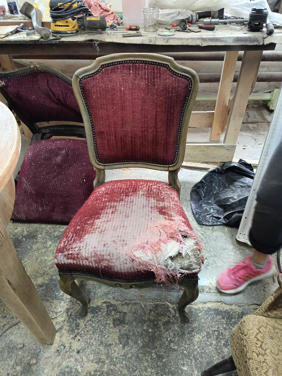 Этого малыша мы, как водится, нашли в "бутике") Внешний вид выдавал европейские (румынские) корни и ощущение, что жизнь помотала его знатно)) Сколько он нас ждал в том неиссякаемом источнике вдохновения - неизвестно, но красота и какое - то внутреннее благородство призвало нас вернуть его к жизни. Вынули старые гвозди, старую шкурку-ткань, вытащили порядком увядшее внутреннее наполнение, выловили моль))) Деревянные детали разобрали, вычистили, вышлифовали, сняли пыль десятилетий и открылся нам бук во всей своей красе. Как будто сама суть его, наконец, проступила! От того решили ничем не красить, а просто покрыть лаком. И заиграло дерево естественными оттенками. Собрали. Пружину вымочили в ортофосфорной кислоте, прибили новые стропы (машинные ремни безопасности подошли как нельзя лучше), уложили подкладку. Затем был поиск нового лица - облицовочной мебельной ткани, которая бы соответствовала духу дерева. И ткань волшебным образом нашлась именно того размера, именно того цвета и эпохи. А