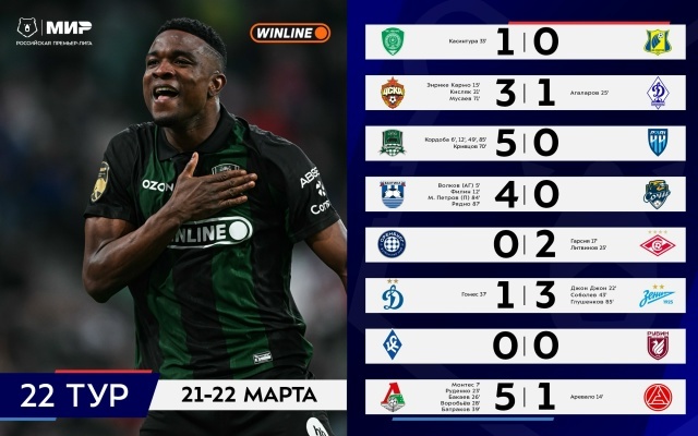 Лидеры подтянулись и набрали максимум очков. "Краснодар" разгромил "Пари НН" (5:0), "Зенит" обыграл "Динамо" (3:1), а "Локомотив" устроил феерию против "Акрона" (5:1). Конкуренты не теряют темп - каждый матч для "Спартака" теперь на вес золота.