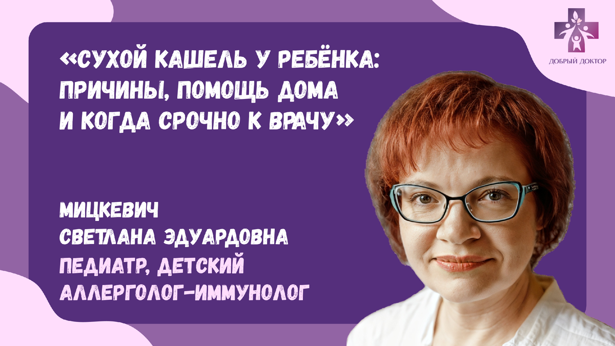 Сухой кашель у ребёнка: причины, помощь, что делать дома и когда срочно к врачу Сухой кашель у ребёнка — почти всегда история про раздражённую слизистую: вирус стартовал, нос течёт внутрь, воздух в комнате пересушен, горло воспалено. Он пугает громкостью и пустым звуком, но опасен не сам по себе, а тем, что иногда маскирует ларингит со стенозом, бронхоспазм или инородное тело — тут ждать нельзя. Сухой кашель называют непродуктивным: мокроты нет (или она слишком густая/её мало), бронхам нечего “выталкивать”, поэтому кашель больше мучает, чем помогает. Чаще всего у детей он начинается в первые 1-2 дня ОРВИ и потом либо стихает, либо переходит во влажный — это нормальный сценарий, если ребёнок в целом бодрый и дышит спокойно. Главные бытовые провокаторы, которые родители недооценивают: сухой тёплый воздух (особенно в отопительный сезон), пыль, табачный дым, резкие запахи. В такой среде слизистая пересыхает, и кашлевой рефлекс проявляется даже от мелочи. Тут работает не волшебный сироп, а