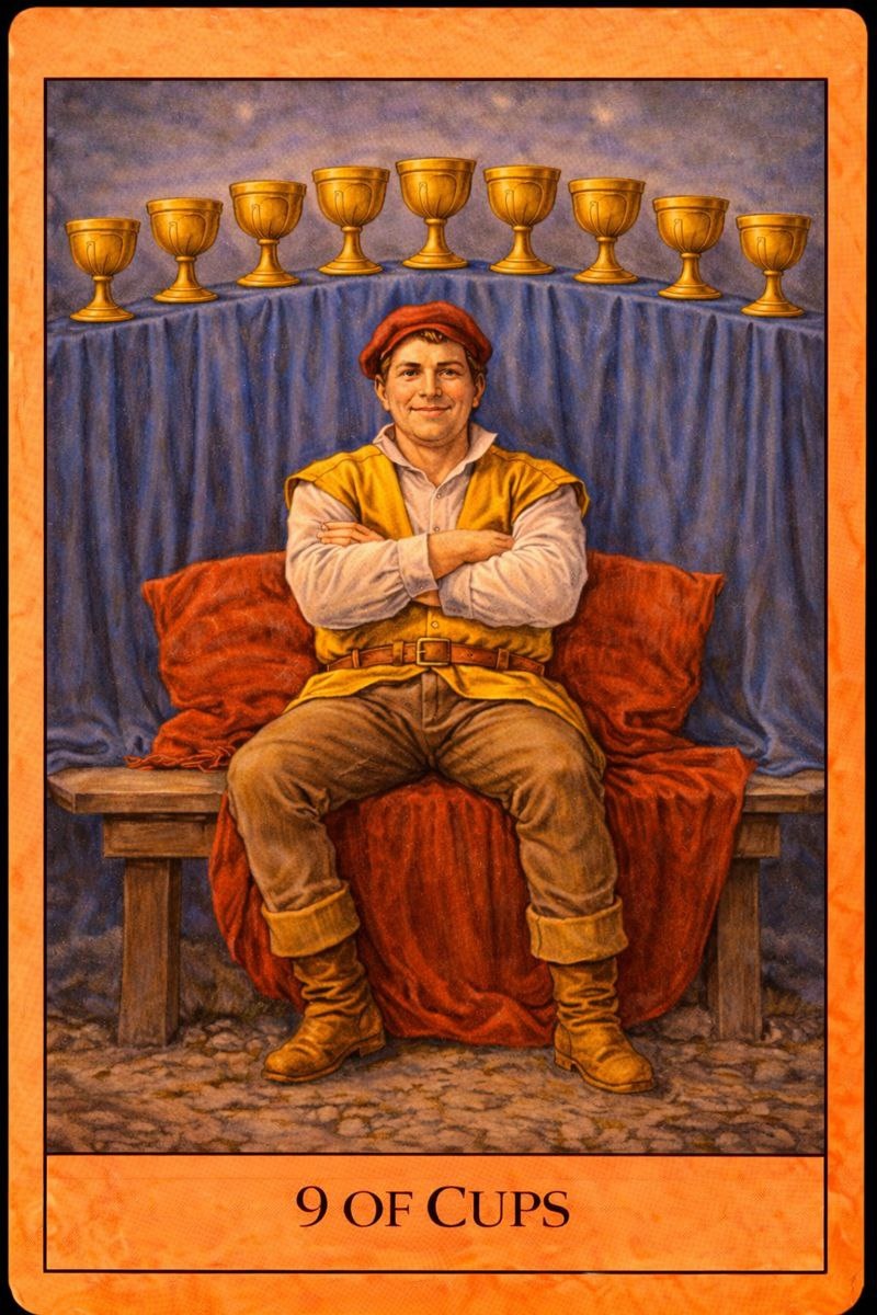 Дата: 23.03.2026 Общее описание дня: Девятка Кубков — день удовлетворения и внутреннего «мне хорошо». Возникает чувство наполненности, довольства собой и ситуацией. Это момент, когда можно позволить себе радость без оглядки и признать, что желания в чём-то уже исполнены. Как использовать этот день: · Позвольте себе наслаждение. · Поблагодарите себя за пройденный путь. · Зафиксируйте ощущение достатка. · Не ищите больше, чем нужно сейчас. Мантра на день: «Я довольна тем, что имею, и принимаю радость.» Связь с Девяткой Пентаклей (22.03.2026): После дня самодостаточности Девятка Кубков наполняет её эмоциональным удовлетворением. Материальная и личная устойчивость сегодня проживается как чувство счастья и внутренней полноты. 🍷