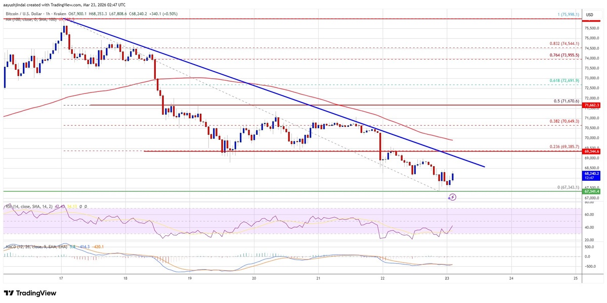 ? ΠΠΈΡΠΊΠΎΠΉΠ½ ΡΠ΅Π·ΠΊΠΎ ΡΠ½ΠΈΠ·ΠΈΠ»ΡΡ Ρ ΠΎΡΠΌΠ΅ΡΠΊΠΈ Π²ΡΡΠ΅ $72,000, Π΄ΠΎΡΡΠΈΠ³Π½ΡΠ² ΠΌΠΈΠ½ΠΈΠΌΡΠΌΠ° Π² $67,343. Π‘Π΅ΠΉΡΠ°Ρ Π°ΠΊΡΠΈΠ² ΠΊΠΎΠ½ΡΠΎΠ»ΠΈΠ΄ΠΈΡΡΠ΅ΡΡΡ Π½ΠΈΠΆΠ΅ $70,500, ΠΈ Π΅ΡΠ»ΠΈ Π½Π΅ ΡΠΌΠΎΠΆΠ΅Ρ Π·Π°ΠΊΡΠ΅ΠΏΠΈΡΡΡΡ Π²ΡΡΠ΅ $70,000, ΠΏΠ°Π΄Π΅Π½ΠΈΠ΅ ΠΌΠΎΠΆΠ΅Ρ ΠΏΡΠΎΠ΄ΠΎΠ»ΠΆΠΈΡΡΡΡ. ΠΠ΅Π΄Π²Π΅ΠΆΠΈΠΉ ΡΡΠ΅Π½Π΄ ΡΡΠΈΠ»ΠΈΠ²Π°Π΅ΡΡΡ, Π° ΡΠ΅Ρ