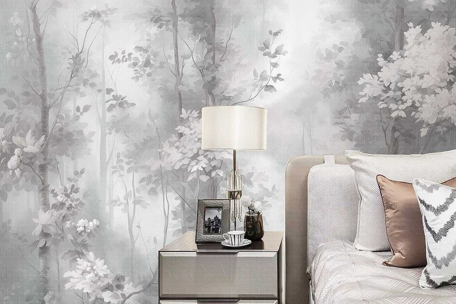 AF2319) представляют собой изысканную художественную стилизацию лесного пейзажа. Сюжет выполнен в технике, напоминающей мягкую акварельную живопись, где акцент сделан не на детализации каждого листка, а на передаче атмосферы, глубины и игры света. 🔸️Цветовые вариации: Коллекция предлагает разные сценарии — от монохромных серо-графитовых оттенков (COL5), создающих строгий и элегантный вид, до нежных оливковых, мятных и золотисто-бежевых тонов (COL1, COL2, COL3), которые привносят природную свежесть. 🔸️Благодаря своей деликатной эстетике и отсутствию резких линий, этот сюжет универсален, но наиболее выигрышно он подчеркнет следующие стили: 🔸️Современный минимализм: Обои станут главным декоративным акцентом в лаконичном пространстве. Они избавляют интерьер от монотонности, не перегружая его лишними деталями. 🔸️Стиль "Тихая роскошь": Природные мотивы в приглушенной гамме идеально соответствуют этому направлению. Они выглядят дорого, благородно и создают ощущение спокойствия. 🔸️Ск