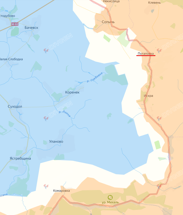 Как сообщают каналы «Два майора» и военкор Александр Коц, село находится на границе с Хомутовским районом Курской области, в 4 километрах к юго-востоку от населенного пункта Сопычь. Освобождение Потаповки было ожидаемым, однако противник, несмотря на передислокацию элитных подразделений, не смог оказать достаточного сопротивления.