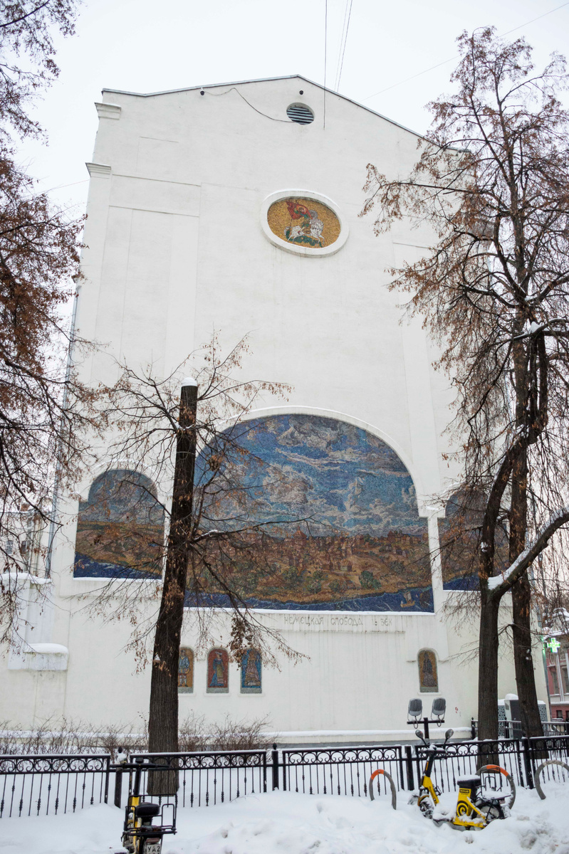Это тоже на тему Новой Немецкой слободы, просто чуть подальше находятся от мозаики. Столько снега было в этом году, что стены видно плохо, придется возвращаться весной.