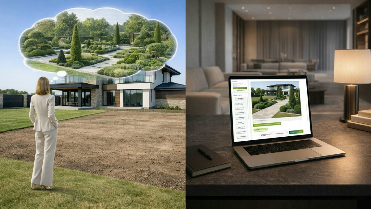 Не чужие проекты, а кадры отелей, текстуры камня, свет в лесу. Покажите дизайнеру свой вкус, чтобы он не гадал. Ещё лучше — «примерьте» понравившийся стиль на фото своего участка в ИИ-дизайнере LandComp. На встрече вы покажете не абстракцию, а черновик: «атмосфера — как здесь». 3. Определите главный кадр