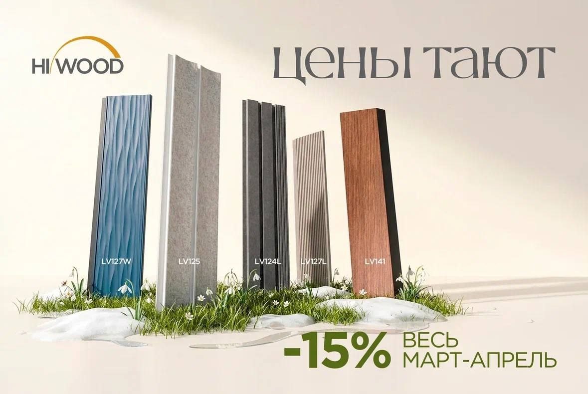 ! ВЕСЕННЯЯ АКЦИЯ HIWOOD: СКИДКА 15% НА ПОПУЛЯРНЫЕ ПАНЕЛИ 🌸 С 5 марта по 30 апреля 2026 года на ряд панелей HIWOOD действует скидка 15%. В акции участвуют: ☑️ LV124L всё, кроме дизайна 'плетёна кожа' ☑️ LV125 все цвета и дизайны ☑️ LV127L все цвета и дизайны ☑️ LV127W все цвета и дизайны ☑️ LV141 все цвета и дизайны Актуальные цены на нашем сайте HIWOOD.MOSCOW. Успевайте включить декоры в свои проекты на выгодных условиях 💐🖤