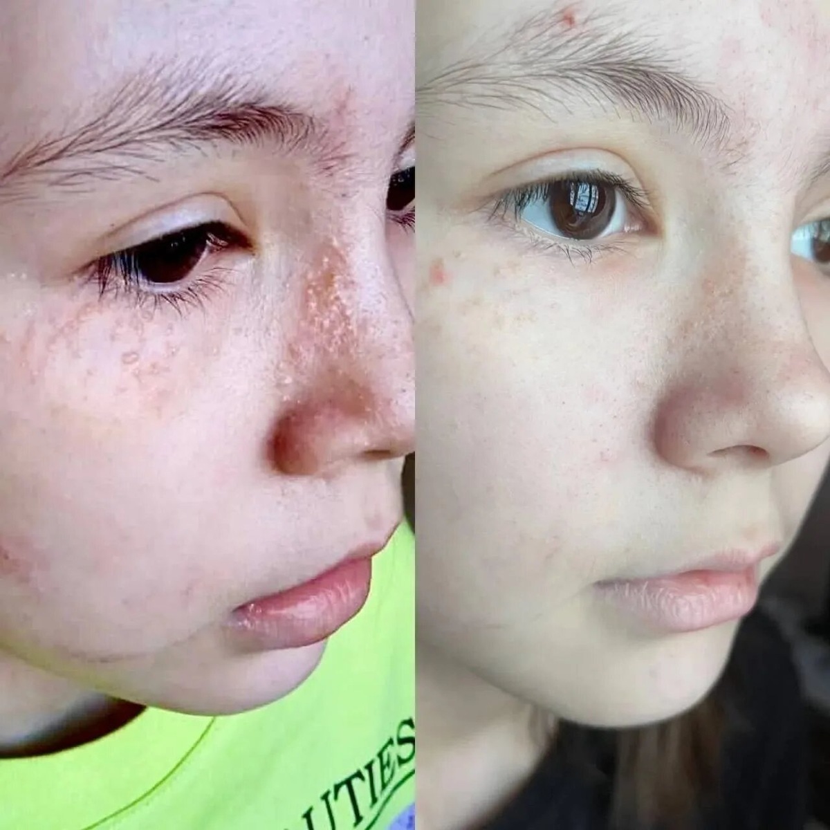 🔥 Осенью 2022 у дочки на правой стороне лица появились прыщики. Думали подростковое. Но они стали разрастаться. В январе 2023г, Обратились к дерматологу. Врачи 3 месяца не знали, что это, тк они росли на одной стороне лица. В итоге, поставили диагноз - НЕВУС САЛЬНЫХ ЖЕЛЕЗ. Дерматолог-онколог подтвердил, что образования доброкачественные и их можно удалить. Тк была весна, удаление назначили на осень, тк в период солнца этого делать нежелательно. Тогда, в марте 2023 года, я принимаю решение давать дочке БИОДРОН внутрь и мазать им пораженные участки лица. Да, биодрон по инструкции пьется внутрь. Но много отзывов, кому он помог справится кожными заболеваниями наружно🫣 КАЖДЫЙ ДЕНЬ МАЗАТЬ И ПИТЬ. БЕЗ ПРОПУСКОВ. До осени! И не ждать быстрых результатов - было нашим правилом. Первые результаты были уже в июне 2023г. В ноябре 2023г прием у дерматолога. Она видит, что их стало меньше и дает нам время до весны. Фото ДО - март 2023г. Фото ПОСЛЕ - это наши результаты на ЯНВАРЬ 2024🥹❤