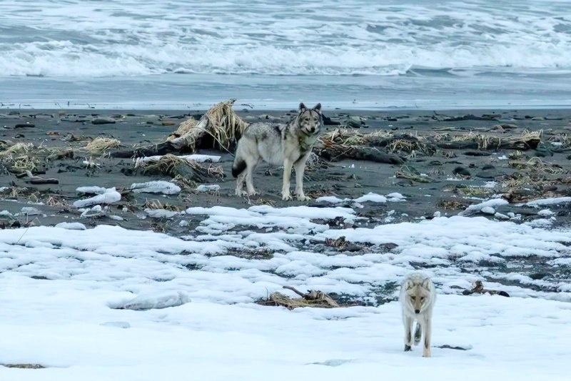 📌 На Камчатке стая волков патрулирует берег бухты Ольга Кроноцкого заповедника
