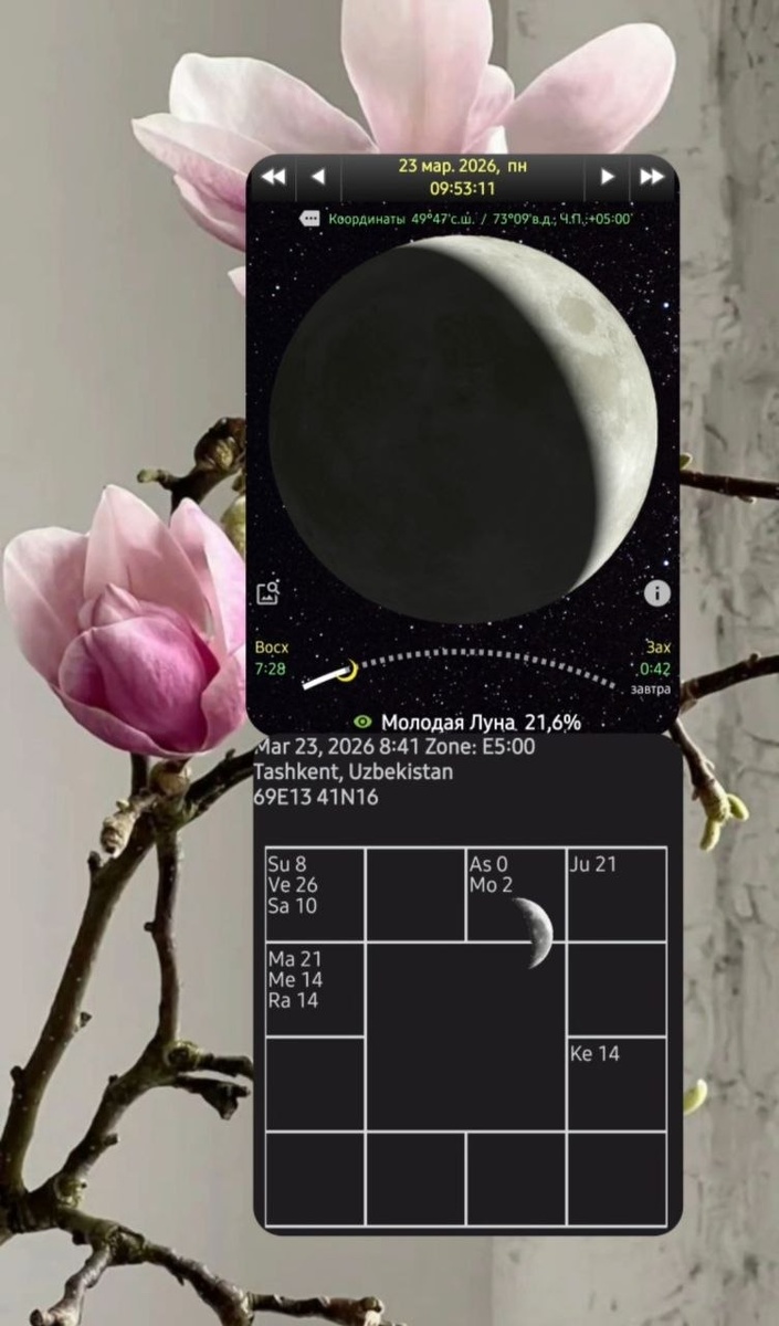 🌛🪻 Ведическая Астрология Молодая Луна в Тельце. Каласарпа йога. ☘️🌛 Луна молода и свежа - она только-только начала показывать свой светящийся бок, намечая контуры нового цикла. Сейчас уникальный момент "чистого неба": никто не ретроградит, коридоры затмений остались позади. 🪻🌛Однако за этим скрывается плотная работа. Планеты сейчас зажаты между Лунными узлами, Раху и Кету. Это время активной отдачи кармических долгов. Если вы чувствуете себя "выжатым лимоном" или ощущаете странную вымотанность без видимых причин - знайте, вы не одиноки. Это энергетическая ревизия. 🌛Что делать в ближайшие дни? 🌸Не сопротивляйтесь. Йога распадается через несколько дней, а пока примите позицию "решателя задач". Как говорится: если проблему можно решить - это не проблема, это задача. 🌸Ищите опору в материи. Луна переходит в знак Тельца. После огненного и импульсивного Овна здесь ей значительно спокойнее. Это идеальный момент, чтобы замедлиться, восстановить ресурс и почувствовать почву под н