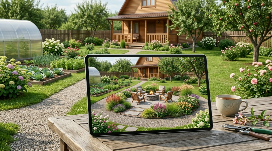Прежде чем браться за лопату, откройте ИИ-дизайнер LandComp. Загрузите фото участка и "расставьте" растения прямо на экране. Вы сразу увидите, где через пару лет будет тень, не перекроет ли крона обзор, впишется ли ель в общий план. Сажаем один раз — любуемся годами. Никаких