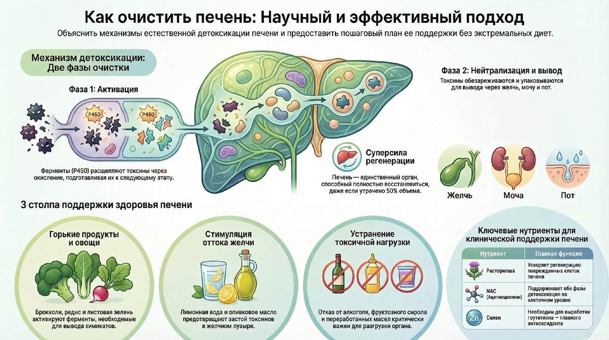 Все привыкли думать, что печень лечат таблетками или курсами. Но некоторые обычные продукты активируют детоксикационные ферменты — это уже не народная мудрость, а биохимия.