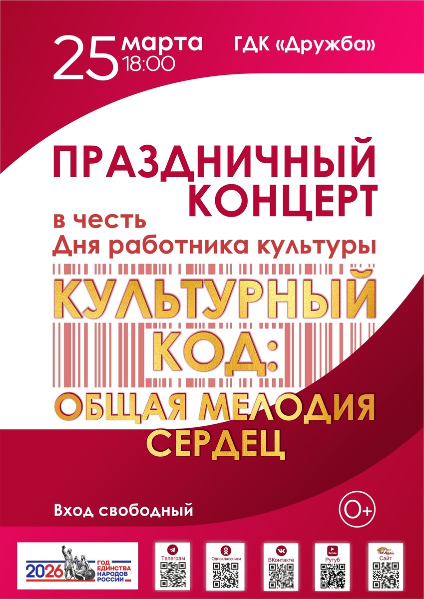 Приглашаем вас на концерт "Культурный код: общая мелодия сердец", посвященный Дню работника культуры, 25 марта в 18.00.