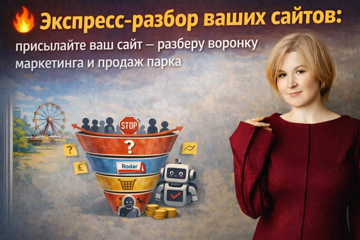 Присылайте ваш сайт — разберу вашу воронку маркетинга и продаж Скажу прямо. Очень часто собственник парка думает, что у него проблема в трафике. Что нужно «докрутить рекламу», «добавить блогеров», «еще чуть-чуть постов», «переделать баннер». А потом начинаешь смотреть путь клиента — и становится видно совсем другое. Не реклама слабая. Не бюджет маленький. Не сезон виноват. Просто воронка собрана так, что человек теряется по дороге. Где-то оффер звучит птичьим языком маркетолога, а не языком мамы или организатора праздника. Где-то сайт не вызывает доверия. Где-то бот ломает логику. Где-то менеджер отвечает так, что хочется поскорее закрыть диалог. А где-то человек просто не понимает — что ему делать дальше, какой следующий шаг? Именно поэтому я запускаю новую рубрику: экспресс-разбор сайтов парков Присылайте ваш сайт, канал или точку входа — и я разберу маркетинг и продажи вашего проекта. Что буду смотреть: — как построена ваша воронка — насколько чётко оффер говорит на языке клиент