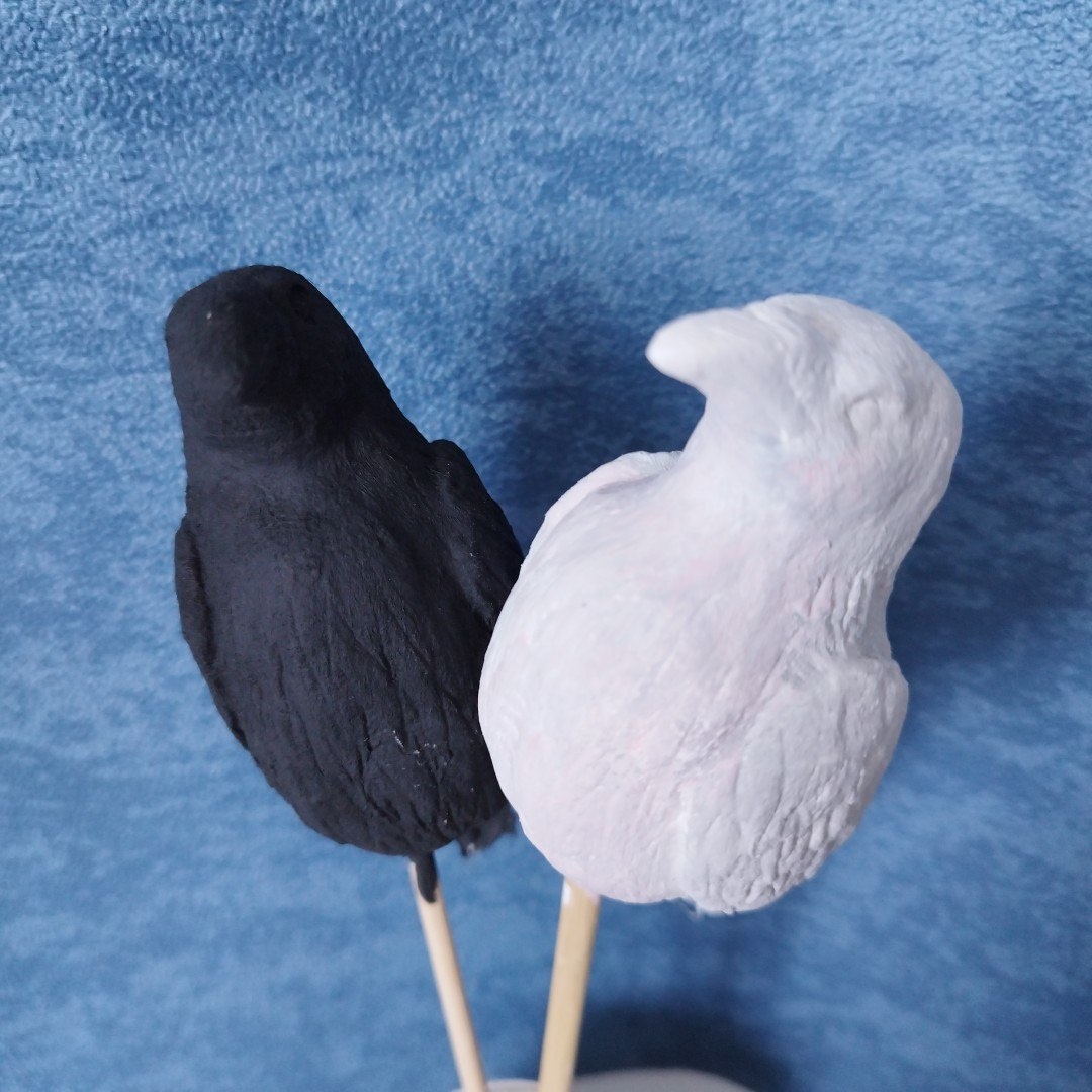 Сделала лапы и покрасила одни в белый, другие в черный цвет. Ворон я тоже покрасила в белый и черный цвет.