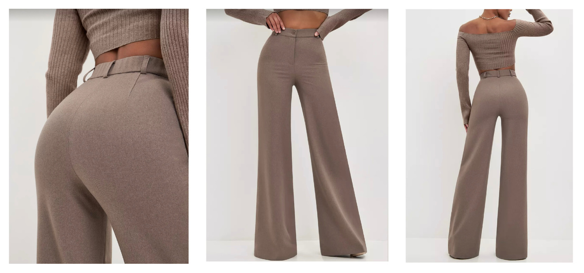В 2026 году брюки палаццо окончательно закрепляются как база гардероба, потому что они дают сразу несколько эффектов — удлиняют ноги, скрывают лишний объём, создают дорогой расслабленный силуэт, при этом остаются максимально комфортными, именно поэтому запросы «брюки палаццо женские 2026», «с чем носить широкие брюки», «как выглядеть стройнее одеждой» продолжают расти. Широкий крой, который расширяется от бедра, визуально напоминает юбку и делает образ более лёгким и элегантным, при этом такие брюки требуют правильной стилизации, чтобы не нарушить пропорции фигуры Модель DITE — это широкие расклешённые брюки палаццо, которые полностью попадают в тренды весна–лето 2026, высокая посадка, свободный крой, минималистичный дизайн, отсутствие лишнего декора, всё это делает их универсальной вещью для капсульного гардероба. Такие брюки изначально создаются как баланс между комфортом и визуальной эстетикой, они не обтягивают, не режут фигуру, а наоборот созд