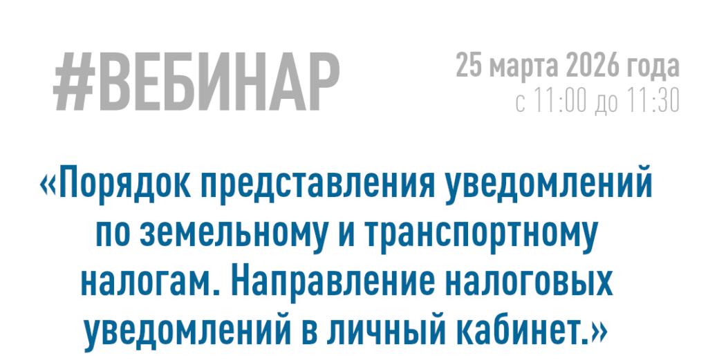 Вебинар по теме «Порядок представления уведомлений по земельному и транспортному налогам. Направление налоговых уведомлений в личный кабинет»