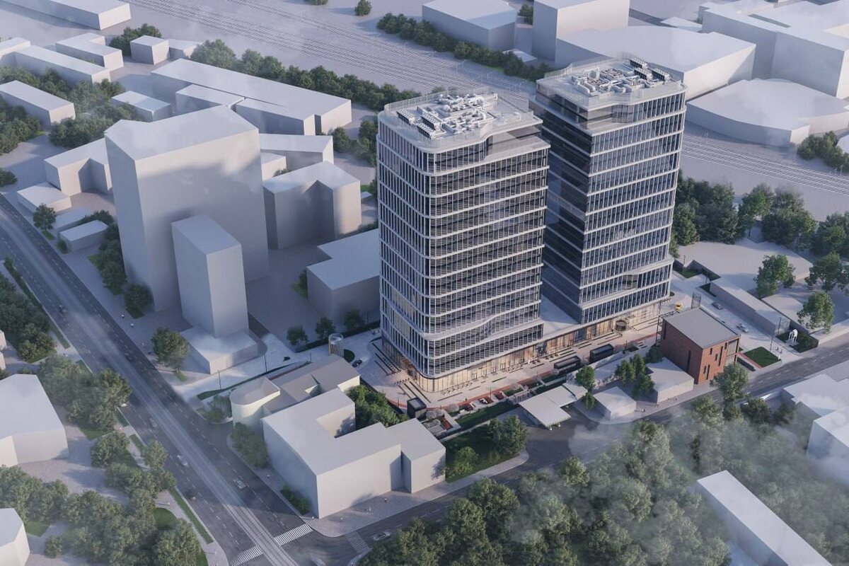 ») БЦ Dubinin’Sky — это новый премиальный общественно-деловой комплекс компании Галс-Девелопмент, состоящий из двух башен высотой 24 этажей и общей площадью 106 088 м², объединенных двухэтажной галереей с магазинами, кафе, ресторанами и другими общедоступными сервисами. 🟢Комплекс расположен на Дубининской улице, в шаговой доступности от метро «Павелецкая», с удобным выездом на Садовое кольцо. 🟢Внешние углы двух строгих объемов башен сглажены за счет плавных линий межэтажных перекрытий, что придает облику комплекса пластичность и легкость. Горизонтальные ленты стеклянных эркеров, расположенных под углом к основному объему здания, формируют выразительный ритм и глубину. 🟢Два 24-этажных корпуса, 68 000 м² площади которых займут офисы, объединены стилобатом 5000 м² с торговой инфраструктурой. В подземной части разместится трёхуровневый паркинг на 450 мест, оснащенный зарядными станциями для электромобилей. Первый и второй этажи стилобата отданы под вестибюли, ресепшн, магазины, рес