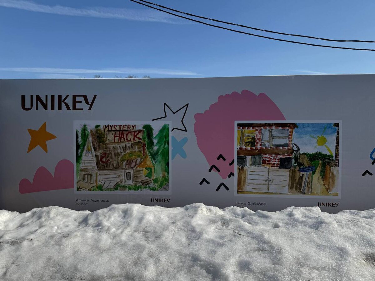 Забор объекта, выходящий на оживленную улицу Александры Монаховой, стал масштабным арт-объектом: здесь разместили работы финалистов конкурса детского рисунка «Дом моей мечты». Идея взглянуть на городское пространство глазами тех, для кого оно строится возникла у основателя девелоперской компании Unikey Айгуль Юсуповой. В конце прошлого года топ-менеджер подвела итоги масштабного конкурса среди юных талантливых ребят. Из сотен присланных работ были отобраны 15 лучших, авторами которых стали дети в возрасте от 5 до 13 лет. «В детстве мир воспринимается иначе. Там, где для взрослого — границы и строительные ограждения, для ребенка — начало мечты. Для нас этот проект стал напоминанием о том, что настоящий дом начинается не с бетона и арматуры, а с фантазии, тепла и веры в чудо. Мы хотели, чтобы эти искренние эмоции стали частью городской среды и визуальной истории "Новых Смыслов"», — отметила Айгуль Юсупова, генеральный директор UNIKEY.
