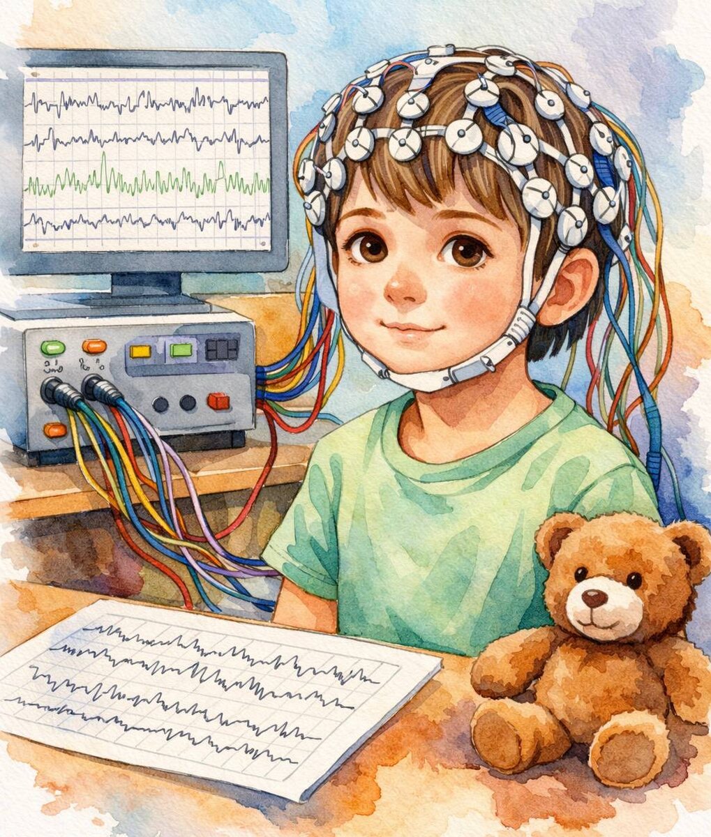 — это исследование, которое показывает электрическую активность головного мозга и помогает врачу оценить, как работают мозговые ритмы в бодрствовании и во сне. Для родителей важно знать: процедура безболезненна и безопасна, по ощущениям — просто шапочка с датчиками, в которой нужно спокойно посидеть или полежать. Чаще всего ЭЭГ назначают, когда есть эпизоды, похожие на судороги: 🤩внезапные замирания с отключением, 🤩подёргивания, 🤩непонятные падения, 🤩ночные приступы, 🤩странные движения во сне, 🤩краткие провалы внимания, после которых ребёнок не помнит событие. Её могут рекомендовать и 🤩при частых обмороках, 🤩некоторых выраженных тиках, 🤩резких изменениях поведения, 🤩а также для контроля при уже установленной эпилепсии и подборе терапии. При этом ЭЭГ не является универсальной проверкой на всё — назначение всегда должно опираться на симптомы. Важно понимать, что ЭЭГ бывает разной по длительности, и от этого зависит информативность. Короткая запись, которую часто делают в п