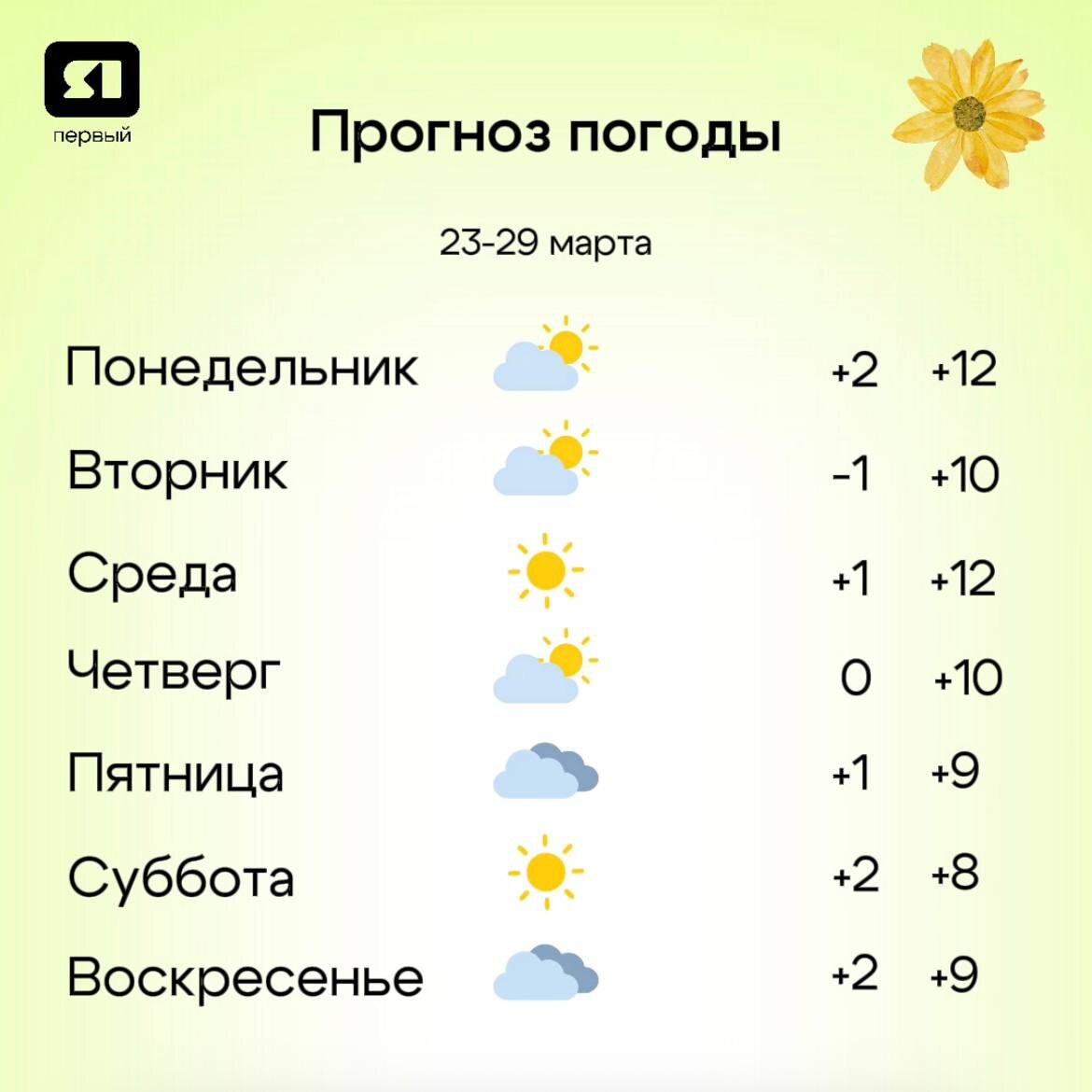 А она будет, пожалуй, ещё лучше, чем на прошлой неделе. Солнечно, тепло и без осадков. К выходным температура станет чуть ниже, но не глобально Поэтому в полной мере можем наслаждаться весенними деньками. И не забываем устраивать себе хотя бы небольшие прогулки. А пока смотрим прогноз⬆️ 💚 Мы в МАХ