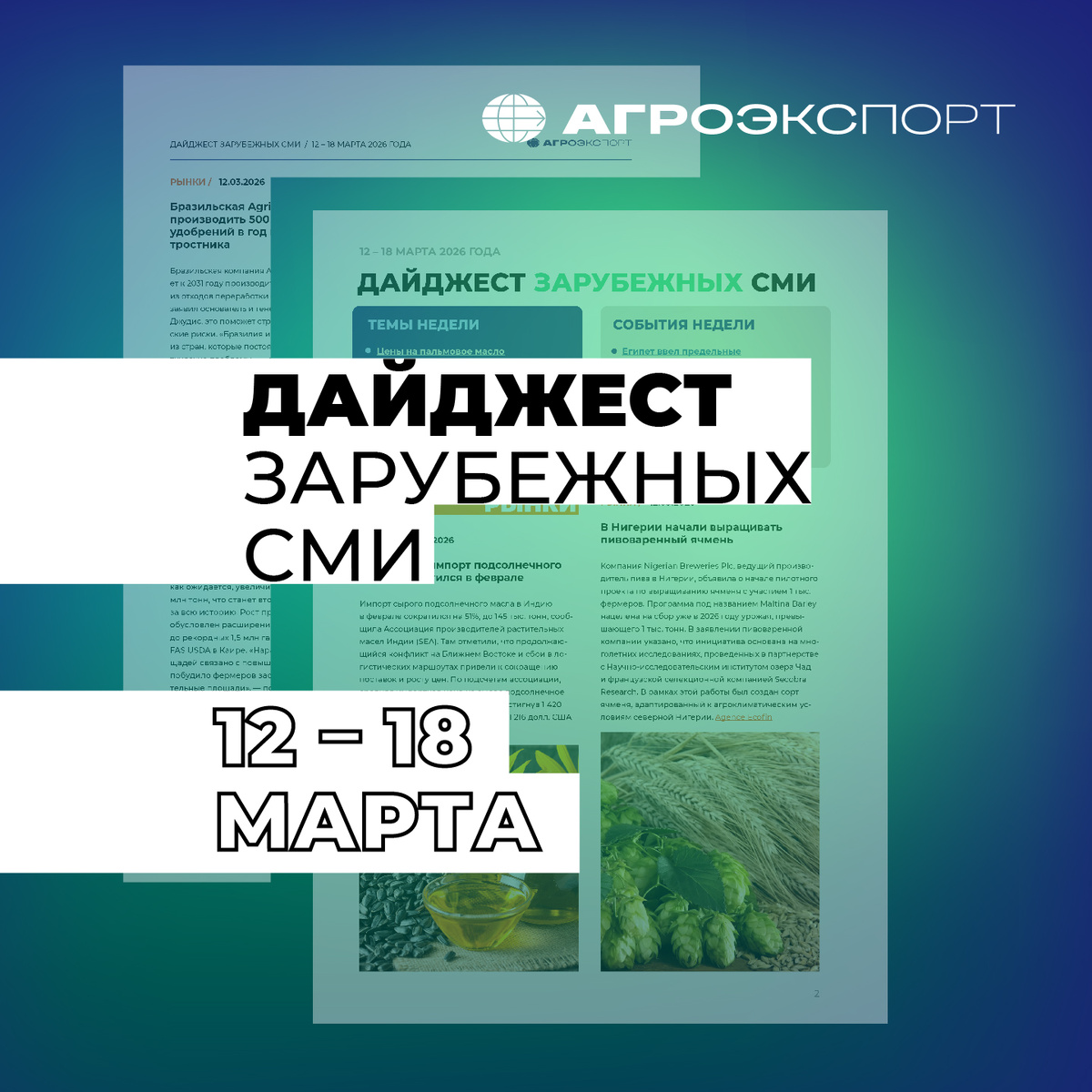 Дайджест зарубежных СМИ от «Агроэкспорта» (12 – 18 марта 2026 года)
