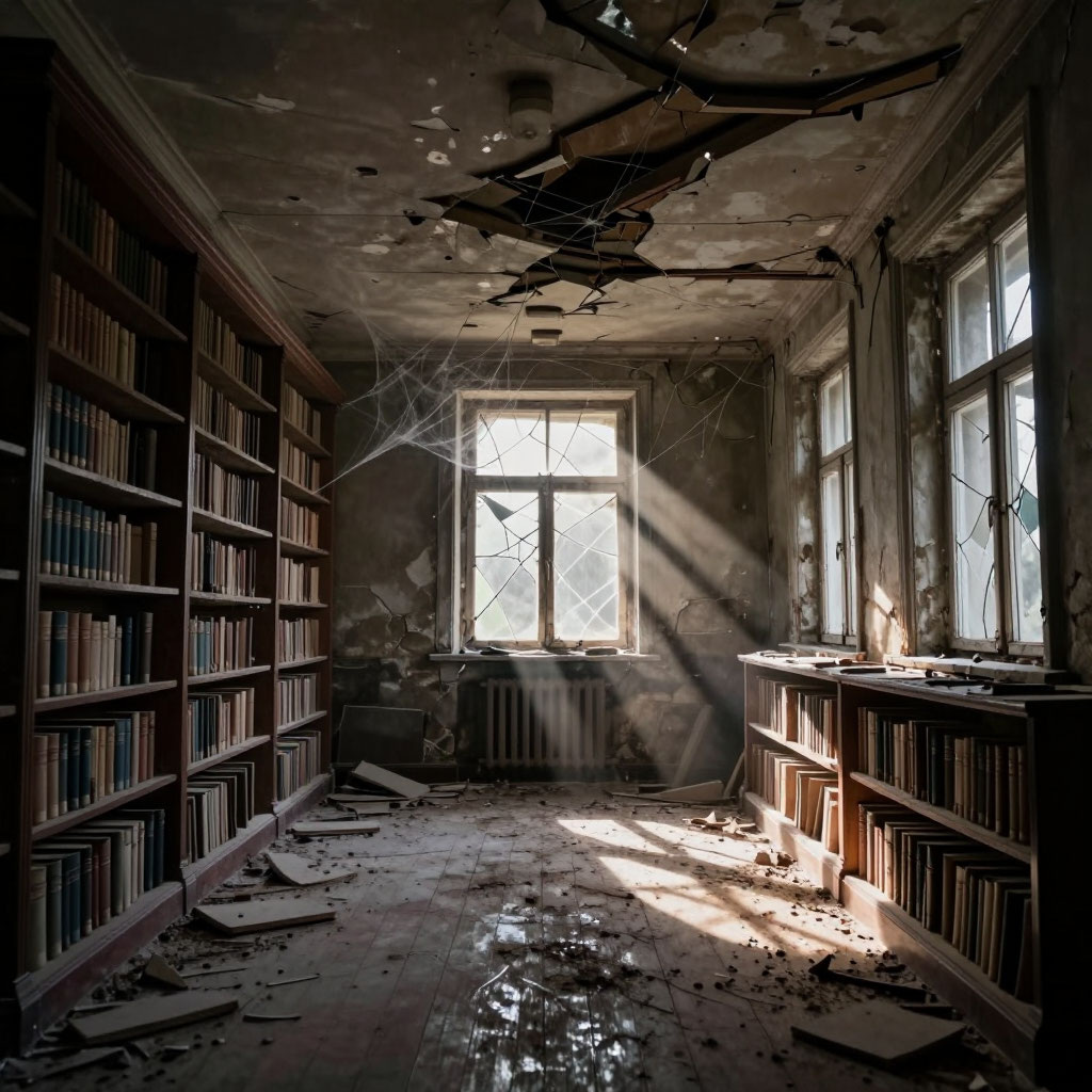 На окраине Болот, там, где туман стоит гуще воды, есть старая библиотека. Полузатопленная, с покосившимися стеллажами и книгами, разбухшими от влаги. И живёт там сталкер, которого зовут Библиотекарь. Он не похож на других сталкеров — носит очки в роговой оправе (найдены в ящике с "нужными вещами") и всегда при себе имеет блокнот и карандаш. Его дело — книги. Не артефакты, не оружие, не консервы. Книги. Каждый день он обходит затопленные залы, вылавливает из тины том за томом, раскладывает сушиться на остатках крыши. Фантастика, детективы, учебники по физике, сборники стихов, поваренные книги — всё подряд. Потом аккуратно расставляет по полкам, которые сам же и починил. Сталкеры смеются: "Что ты с этим хламом возишься? Бумага же гниёт!" А Библиотекарь отвечает: "Знания не гниют. Они просто ждут своего читателя". И вот что удивительно: в его библиотеке книги оживают. Вернее, не сами книги, а то, что в них написано. Один сталкер взял почитать учебник по выживанию в экстремальных условиях