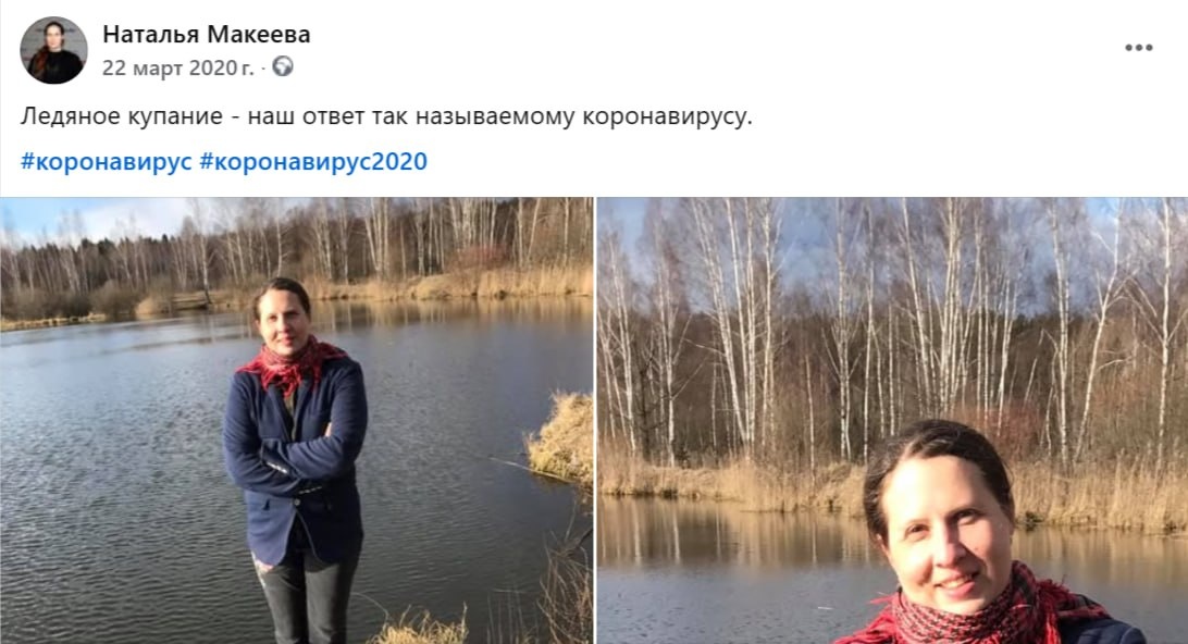 Вчера я заехала в Королёв и искупалась на озере Тряпка (название народное, по-правильному вроде как Торфянка). Фотки скоро будут. Приезжаю вечером домой, захожу в воспоминания в одной запрещённой соцсети и вижу, что ровно шесть лет назад, в 2020 году, я тоже заезжала сюда. И купалась. При том, что больше я на Тряпке до вчерашнего дня не была... В разгар коронавирусной истерии, 22 марта 2020 года, я разместила эти снимки вот с таким постом: "Ледяное купание - наш ответ так называемому коронавирусу. #коронавирус #коронавирус2020".