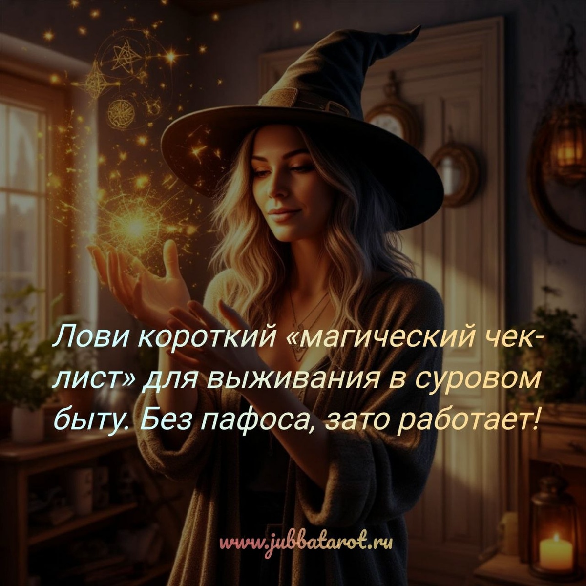 🧙Без пафоса, зато работает! Маг-чек-лист: Бытовой дзен! 🤠 Фейсконтроль: Повесь над дверью маленькое зеркальце (отражением наружу). Весь негатив гостя вернется ему же в лоб. 💰Поиск пропажи: Рявкни: «Домовой, поиграй да отдай!» и хлопни в ладоши. Мозг «протрезвеет» и тут же найдет ключи под носом. 🎺Звуковая чистка: Чувствуешь «тяжелую» атмосферу? Прохлопай углы в комнате. Хлопок разбивает застой энергии быстрее любого ладана. 🪞Утренний приказ: Скажи зеркалу: «Сегодня со мной случатся три крутых события». Мозг покорно пойдет их искать и обязательно найдет. Совет эксперта: Магия — это твоя уверенность. Будь главной хозяйкой своей реальности! С теплотой ДжуббаТаро💞 #бытоваямагия #магчеклист #эзотерикаюмор #jubbatarot