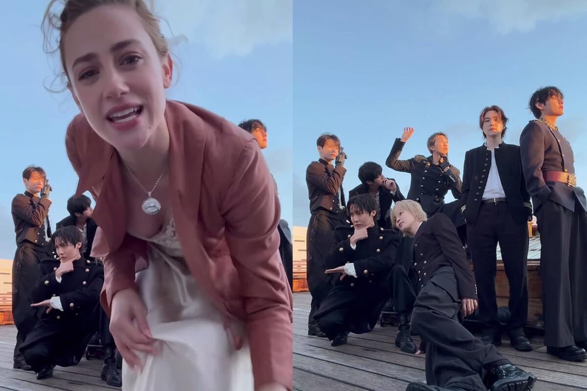 Голливудская актриса Лили Райнхарт, исполнившая главную роль в новом клипе группы BTS на композицию «SWIM», поделилась закадровыми материалами со съемок. Артистка опубликовала в социальных сетях видео с участниками коллектива, которое быстро привлегло внимание аудитории. Премьера клипа на заглавный трек «SWIM» из пятого полноформатного альбома BTS под названием «ARIRANG» состоялась 20 марта на YouTube. Масштабные съемки проходили в Лиссабоне, Португалия, где основными локациями стали открытое море, настоящее крупногабаритное судно и детализированные павильонные декорации. В сюжете видеоработы Лили Райнхарт воплотила образ героини, переживающей глубокое отчаяние и внутренние метания на борту корабля. Участники BTS предстали в роли моряков, которые управляют судном, поднимают якорь и оказывают молчаливую поддержку героине в ее сложном пути. Актерская игра Райнхарт получила положительные отзывы за точную передачу эмоциональной атмосферы композиции. Сразу после релиза клипа актриса выложил