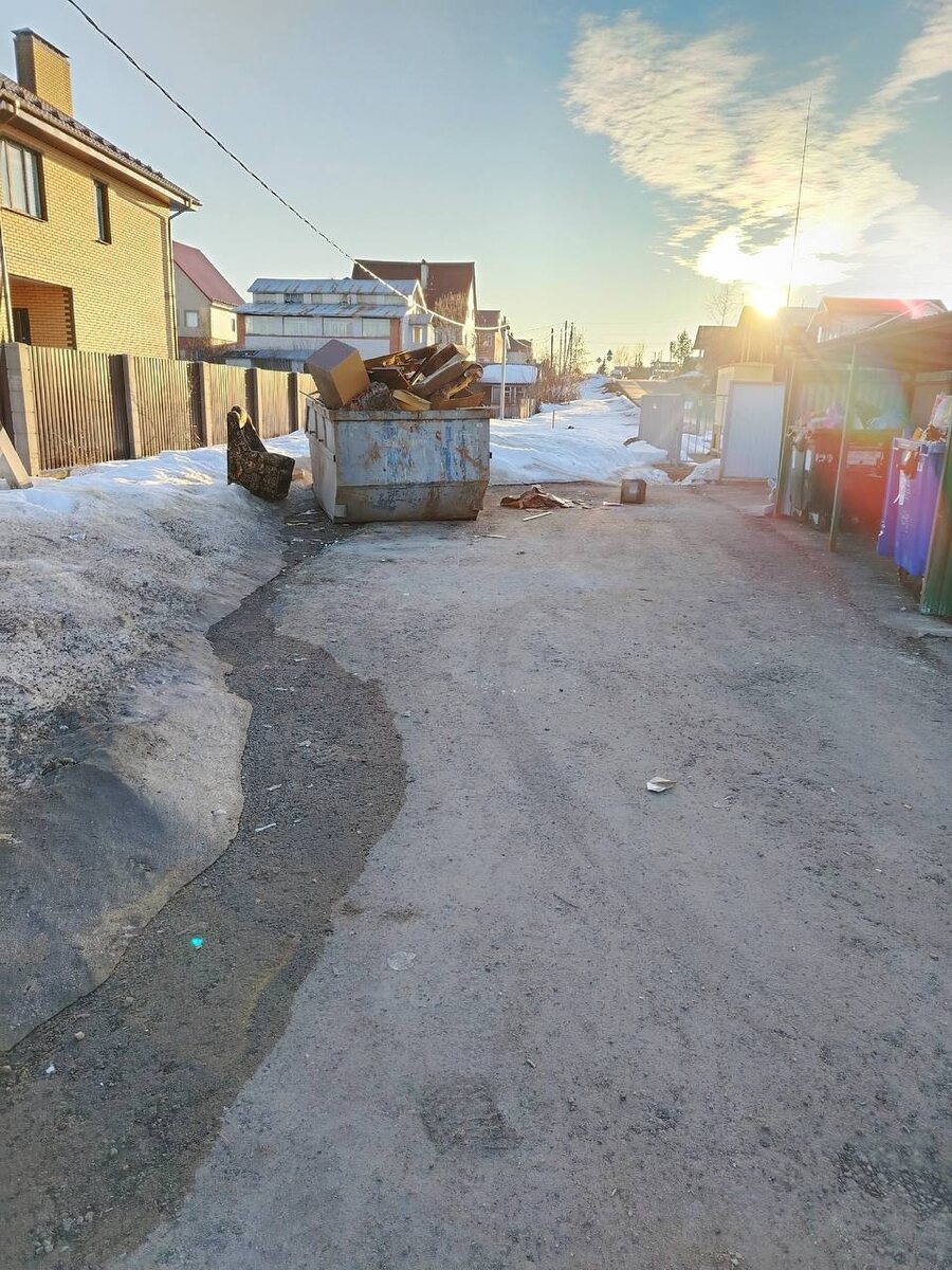 Октябрьская д. 52..Водители мусоровозов решили, что можно недовозить контейнер до полощадки накопления тко. В связи с чем, огромный привет ООО "Сергиево-Посадский РО". Просьба обратить на это внимание сотрудникам Госадмтехнадзора (и наказать виновных) и Администрации г.Дубна.