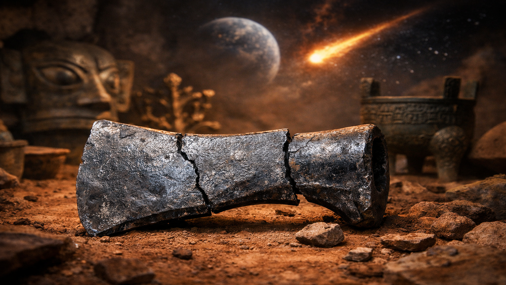 В журнале Archaeological Research in Asia группа ученых под руководством доктора Хайчао Ли рассказала о находке, которая меняет представление о металлургии древнего Китая. На археологическом памятнике Саньсиндуй, в провинции Сычуань, обнаружили крупнейший из когда-либо найденных в Китае артефактов бронзового века, изготовленный из метеоритного железа. Саньсиндуй — это древний город, существовавший с 2800 по 600 год до н.э., включающий дворцовые постройки, ремесленные мастерские и жертвенные ямы. Среди необычных находок — бронзовые маски, деревья и статуэтки. Новый артефакт, обозначенный как K7QW-TIE-1, имеет форму топора или короткого оружия длиной около 20 см и шириной до 8 см, и представлен тремя фрагментами. Анализ с помощью сканирующего электронного микроскопа и энергодисперсионного спектроскопического метода показал, что железо в артефакте не подвергалось сложной обработке и было изготовлено задолго до широкого использования плавки железа в Китае. Высокое содержание никеля делает