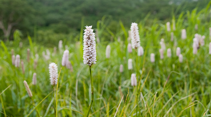 Присмотримся к двум самым распространенным и лекарственным видам. Горец змеиный в разных источниках часто встречается под устаревшими синонимичными названиями: змеевик большой, змеевик лекарственный, змеиный корень или горлец. Это многолетнее травянистое растение произрастает в болотистых местах, по берегам рек, в лесах на севере региона – чем севернее, тем его больше, особенно в гористых тундрах, на Урале и Тимане. Если на юге Коми он встречается лишь на болотах, то от Ухты и севернее – везде, в том числе на лугах. Это вечнозеленый многолетник с розовыми колосовидными соцветиями длиной 5–7 см. Свое видовое название он получил благодаря змеевидным изгибам короткого, толстого корневища. Именно корень является лечебным сырьем растения.