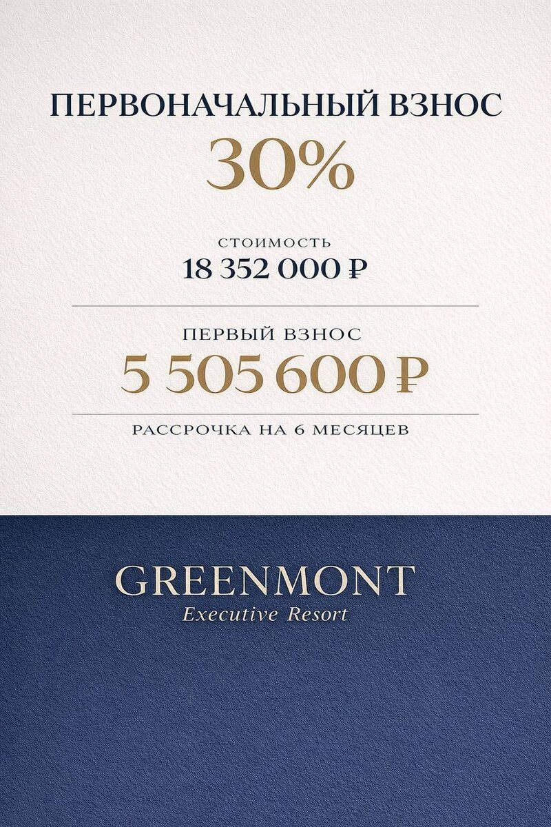Покупаем апартаменты с минимальной нагрузкой на старте и беспроцентной рассрочкой на 6 месяцев. 🔹 Условия: ✅ Первоначальный взнос – всего 30% от общей стоимости ✅ Без удорожания рассрочка на 6 месяцев ✅ Ежемесячный платёж – 1,5% от стоимости апартамента ✅ Остаток – единым платежом в конце срока 📊 На реальном примере: Объект: Апартамент №577 К1 БС5 (под отельного оператора) • Гост номер: 5.2.3 • Этаж: 2 • Площадь: 24.8 м² • Тип: 1-комнатные • Вид: внутренняя территория и двор 💰 Стоимость апартамента – 13 888 000 ₽ 🛠 Комплектация (РМТ) – 4 464 000 ₽ Итого – 18 352 000 ₽ Как это работает: 1️⃣ Первый взнос (30%) – 5 505 600 ₽ Этой суммой сразу закрываем комплектацию, остаток идёт в счёт апартамента. 2️⃣ 6 месяцев беспроцентной рассрочки Ежемесячный платёж = 1,5% от цены апартамента👉 208 320 ₽ / месяц 3️⃣ Финальный платёж (после 6 месяцев) Оставшаяся часть стоимости апартамента – одним платежом. 📈 Итоговая схема платежей: Первый взнос 5 505 600 ₽ 30% 6 × 208 320