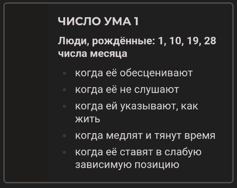 ! 🤬 У каждого из нас есть вещи в жизни, которые ну вот прям бесят. Внутренне раздражают, триггерят, выбивают из спокойного состояния... Более того, у нас есть свои личные триггеры. И они очень четко завязаны под дату вашего рождения. Когда не слушают, когда ограничивают свободу, когда создают хаос - в общем, у всех свои тараканы)) Пока вы не понимаете, что именно вас раздражает, вы будете срываться не в те моменты, портить отношения, копить раздражение и думать, что «что-то не так с вашей жизнью». Хотя дело вообще не в жизни, а в том, что вы просто не знаете свою систему реакций. Также когда вы не понимаете триггеры других людей, вы можете случайно задевать, обесценивать, провоцировать конфликты с ними... Поэтому я собрала для вас очень наглядный разбор: 👉🏻 что именно вас может злить по дате рождения 👉🏻 какие ситуации вас выбивают Изучайте, сохраняйте и делитесь с близкими. И если откликается, поставьте реакцию! 🤍 С вами была Анастасия Еленская