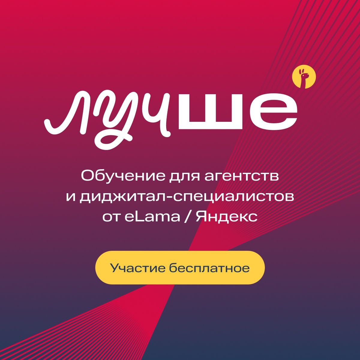 ! Мы рады выступить партнёрами нового потока Академии «ЛУЧШЕ» — бесплатной образовательной программы от eLama для digital-специалистов и агентств. Старт программы уже 1 апреля. Будем рады, если вы присоединитесь и поддержите запуск вместе с нами — это отличная возможность прокачать навыки в рекламе и маркетинге, пообщаться с экспертами рынка и получить практические знания. Что ждёт участников: • 2 месяца прикладного обучения • 20+ практических уроков • 10 эфиров с экспертами индустрии • 4 офлайн-воркшопа с лидерами рынка (Авито, VK, Яндекс и др.) • 30+ экспертов из ведущих компаний • профессиональное комьюнити digital-специалистов Участие в Академии бесплатное. Если вы работаете с рекламой, маркетингом или развиваете агентство — присоединяйтесь к новому потоку. 👉 https://luchshe.elama.ru После регистрации вы получите доступ к платформе программы и Telegram-сообществу Академии.