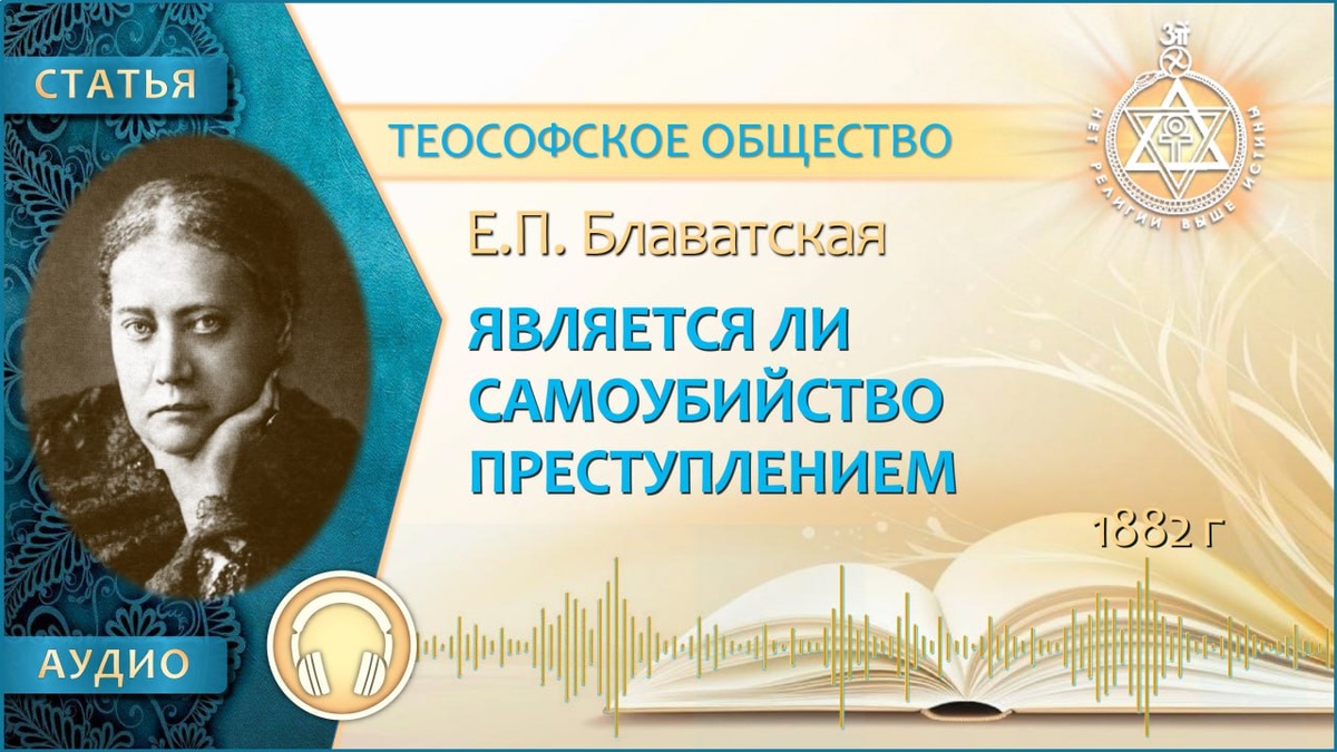 Π ΠΎΡΠΈΠ³ΠΈΠ½Π°Π»Π΅ ΠΎΠ½Π° ΠΎΠΏΡΠ±Π»ΠΈΠΊΠΎΠ²Π°Π½Π° Π·Π΄Π΅ΡΡ: https://en.teopedia.org/lib/Blavatsky_H.P._-_Is_Suicide_a_Crime βοΈΠΡΠ΄ΠΈΠΎΠ·Π°ΠΏΠΈΡΡ ΠΏΡΠ±Π»ΠΈΠΊΡΠ΅ΡΡΡ Ρ ΡΠ°Π·ΡΠ΅ΡΠ΅Π½ΠΈΡ Π΄ΠΈΠΊΡΠΎΡΠ°. πΈ ΠΠ»Π°Π³ΠΎΠ΄Π°ΡΠΈΠΌ Π΅Π³ΠΎ ΠΈ ΠΏΡΠ±Π»ΠΈΠΊΡΠ΅ΠΌ ΡΡΡΠ»ΠΊΡ Π½Π° Π΅Π³ΠΎ ΡΠΎΠΎΠ±ΡΠ΅ΡΡΠ²ΠΎ Π² ΠΠΠΎΠ½ΡΠ°ΠΊΡΠ΅ "ΠΡΠ΄ΠΈΠΎ ΠΊΠ½ΠΈΠ³ΠΈ BIGBAG": vk.com/bigbag_audio