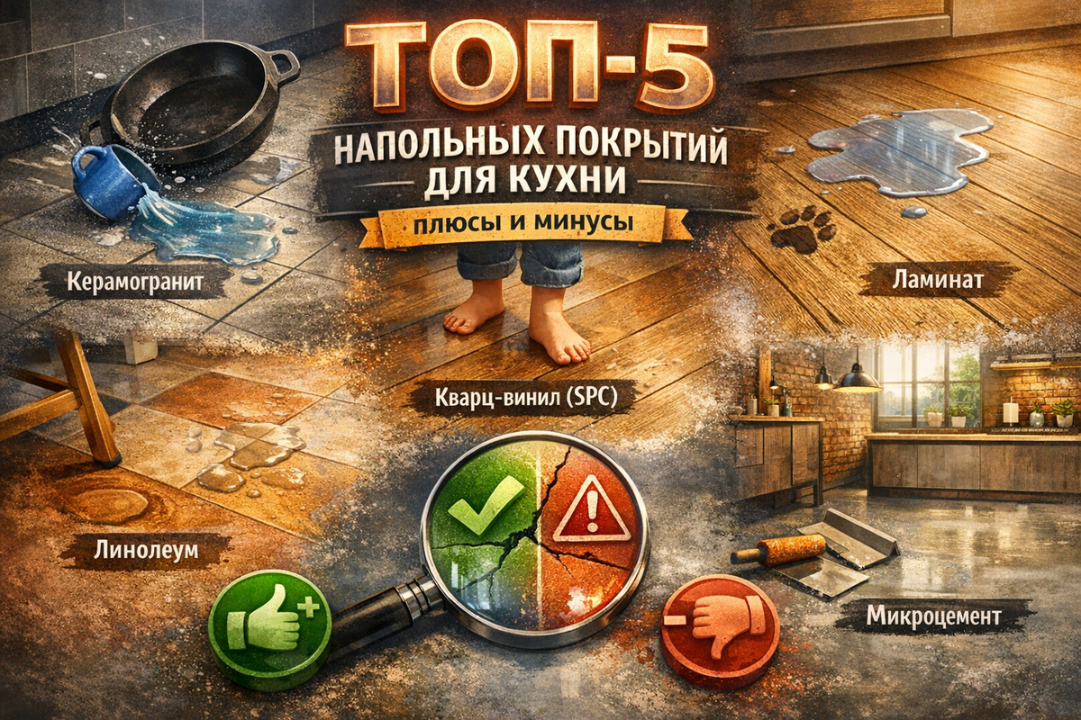 Выбор пола для кухни — это не про поиск «идеального» материала. Идеального не существует. Это всегда выбор тех недостатков, с которыми лично вам будет проще жить. Одни готовы простить плитке холод за ее надежность. Другие выбирают кварц-винил за комфорт. Третьи сознательно идут на риск с ламинатом ради красоты и бюджета.