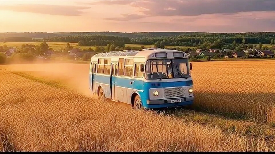 Автобус остановился на безлюдном перекрёстке посреди поля.